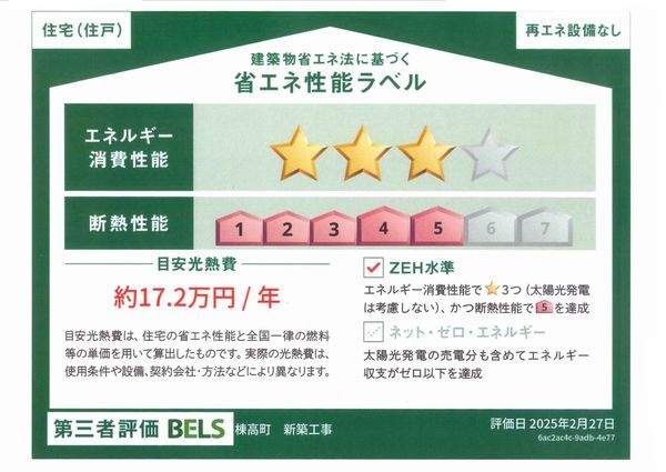 | 備考 | 駐車スペース2台分は可能です。 建築確認番号:第R06確認建築高崎市00152号(令和6年10月7日) 一次エネルギー消費量削減率24% 外皮平均熱貫流率UA値=0.5 耐震等級3相当 |